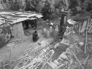 अपाङ्गता भएका पुरुष लुगा सिलाउदैं गरेको अवस्था