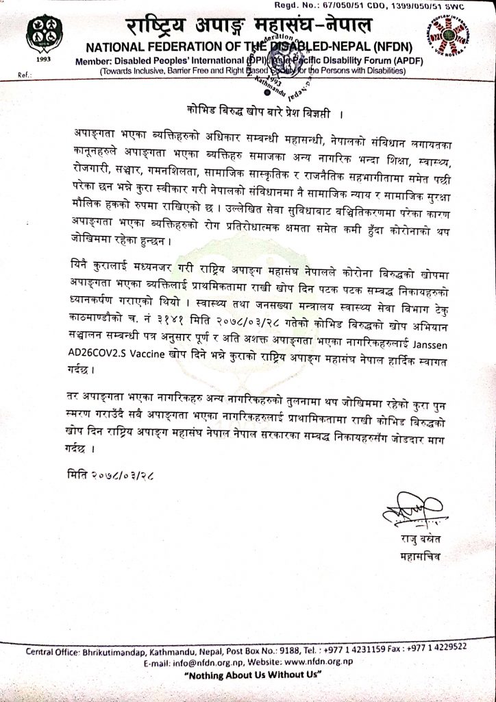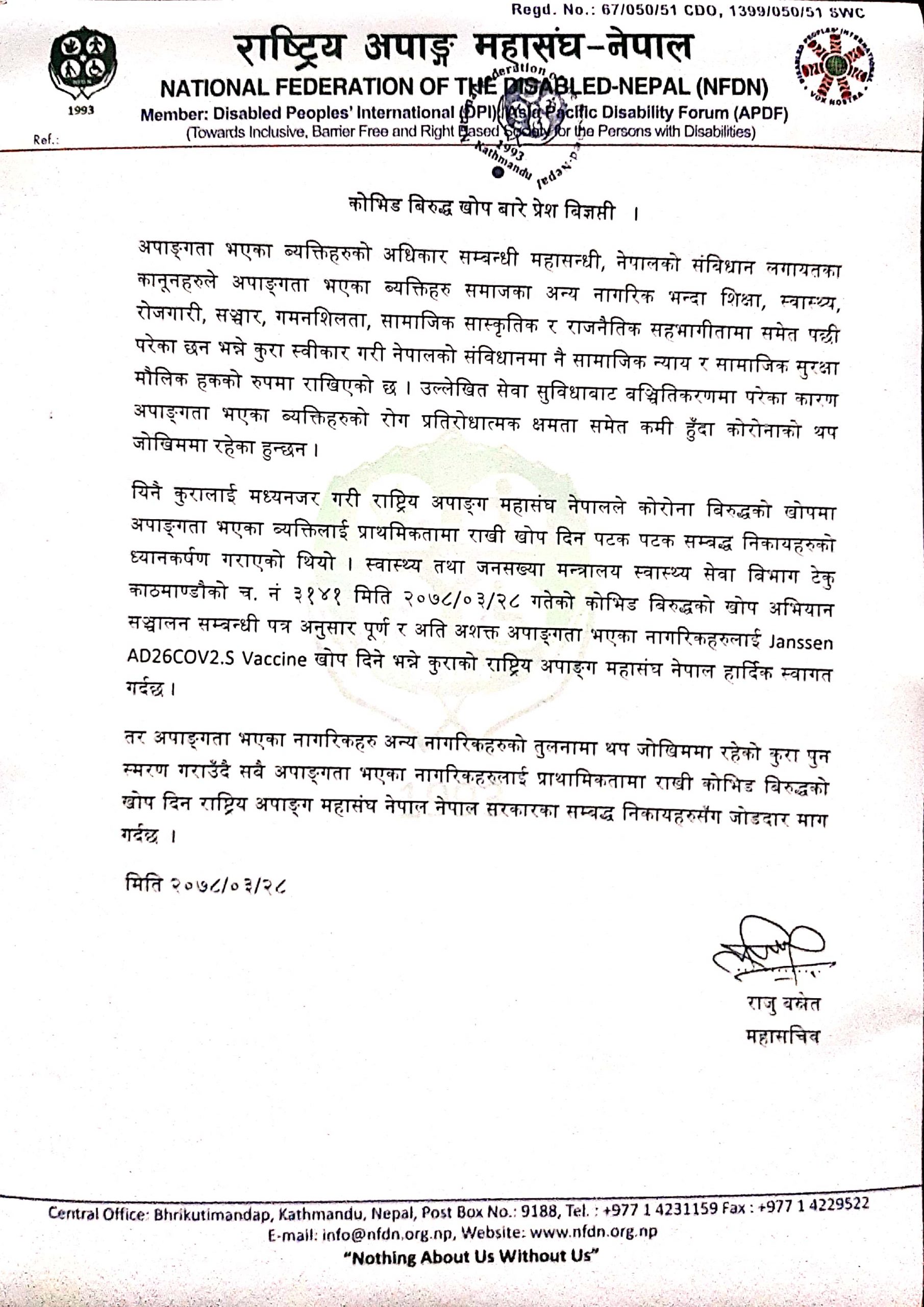 कोभिड विरुद्धको खोप सम्बन्धी प्रेश विज्ञप्ति