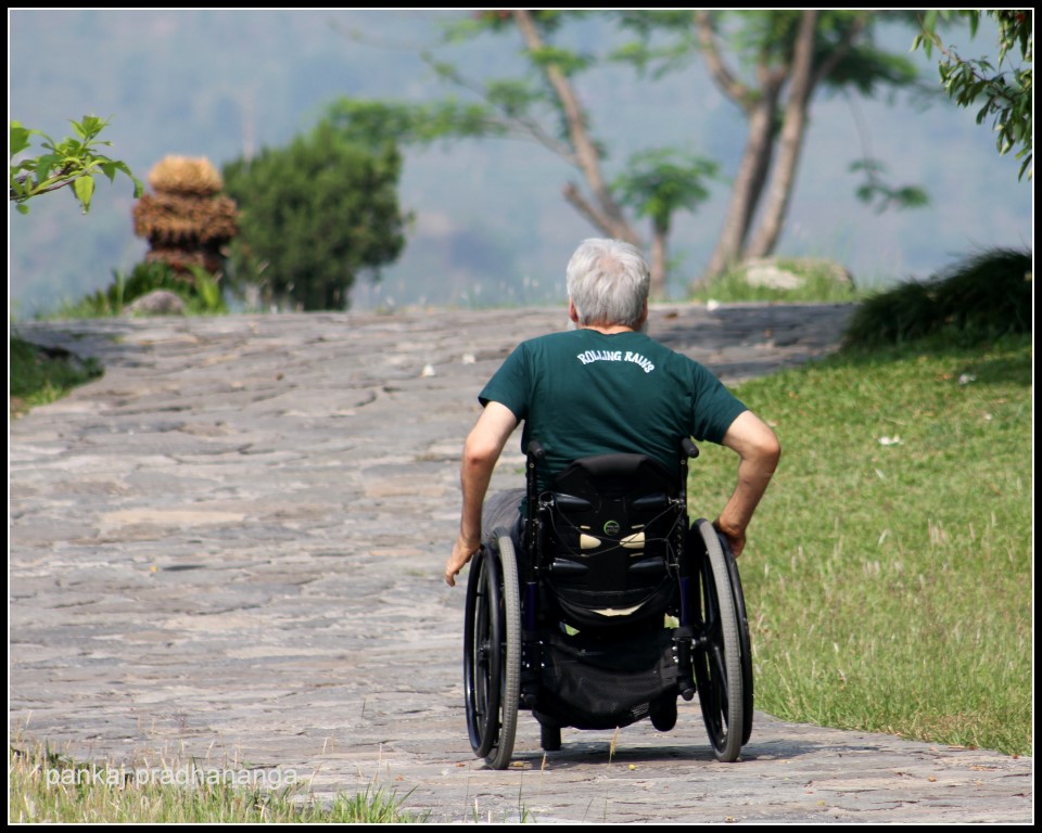 Photo Description: Dr.Scott was walking on wheelchair to look beautiful sites of nature
