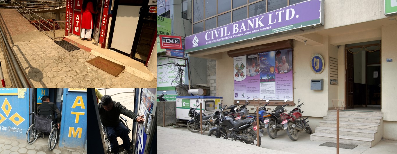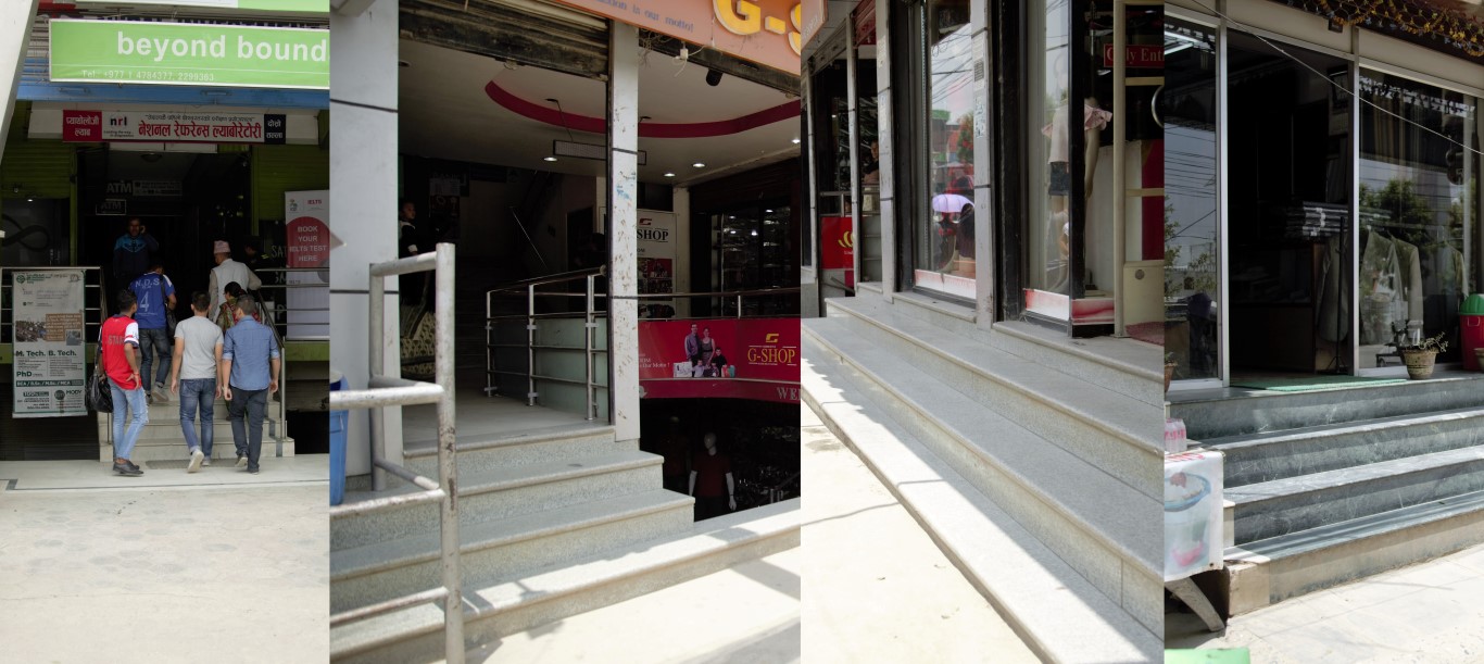 ४. कम्तीमा पनि सार्वजनिक स्थलहरू सबैका लागि पहुँच युक्त हुनु पर्ने हो, तर अपाङ्गता भएका व्यक्तिहरू चित्रमा देखाए जस्तै दैनिक जीवनमा पुर्ण रूपले अवरोध भोग्दै आइरहेका छन् ।