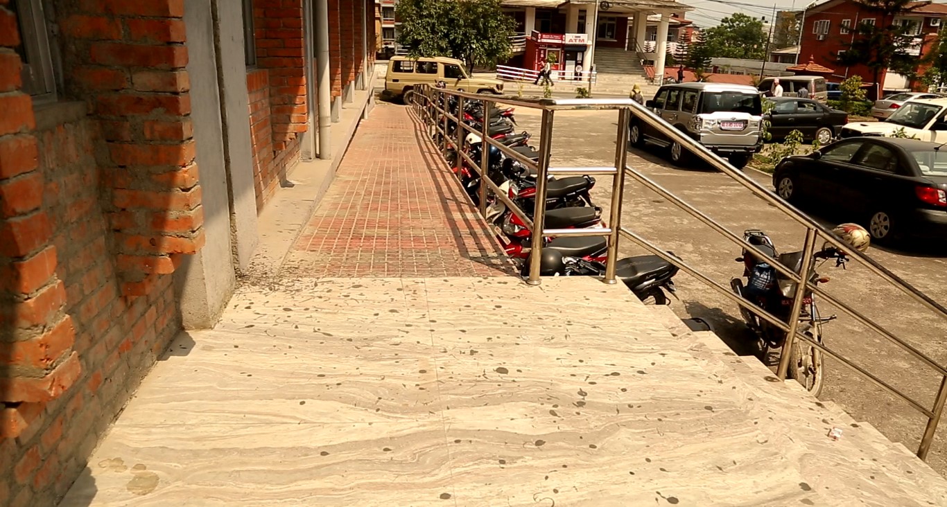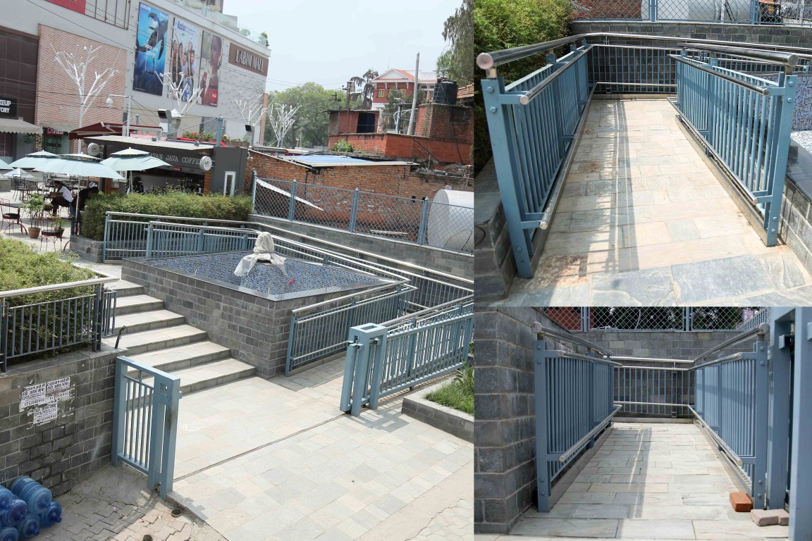 ८. सिंहदरबार स्थित महिला बालबालिका तथा समाज कल्याण मन्त्रालयले आफ्नो नयाँ भवनमा अपाङ्गता भएका व्यक्तिहरूलाई लक्षित गरी निर्माण गरेको व्हिलचियर र‍्याम्प।
