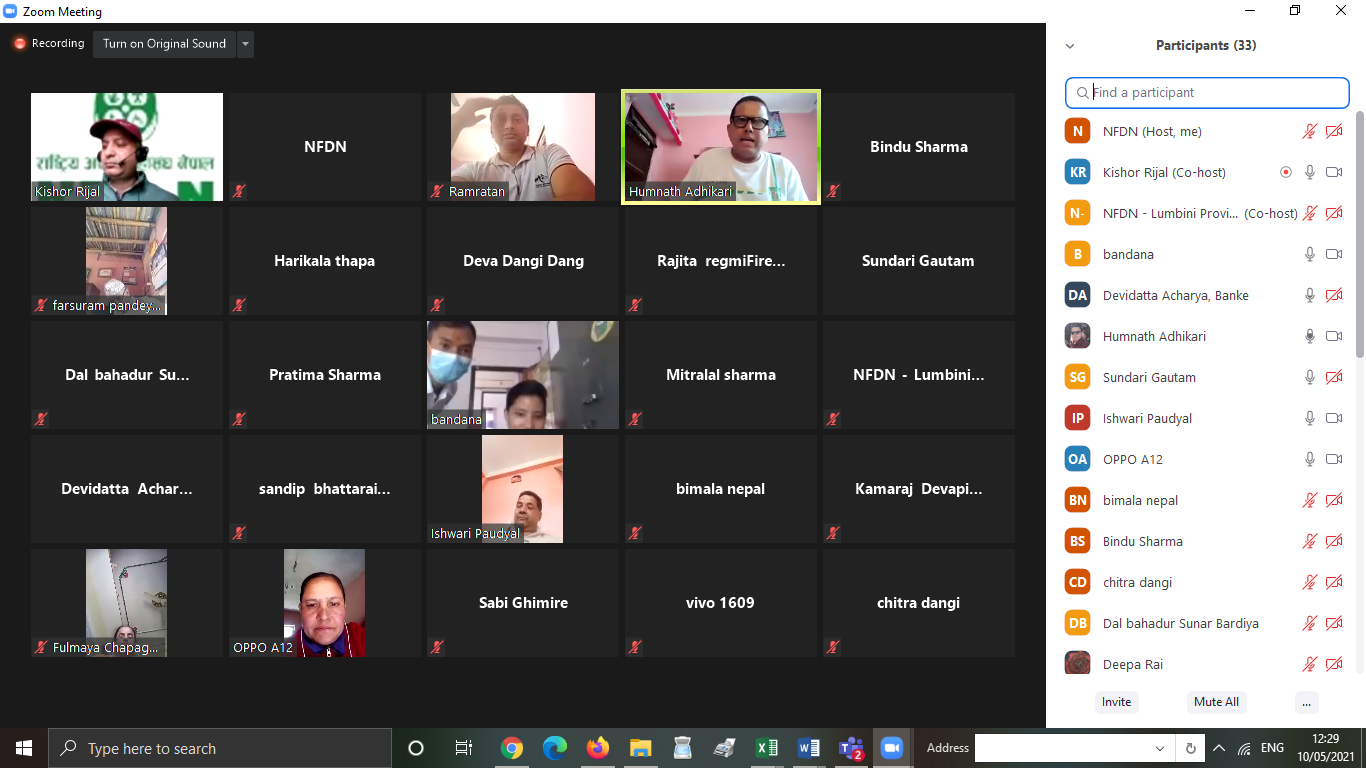 लुम्बिनी प्रदेश हाल कोभिड १९ को हटस्पट भएको सन्दर्भमा अपाङ्गता भएका व्यक्तिहरुलाई के कसरी दुर पुर्नःस्थापना तथा दुर परामर्श उपलब्ध गराउन सकिन्छ र जिल्ला सम्पर्क व्यक्तिहरु र महिला दौंतरी परामर्शदाताहरुको यसमा के र कस्तो भुमिका रहन्छ भन्ने विषयमा आधारित भई अभिमुखीकरण तालिम विश्व स्वास्थ्य संगठन नेपालका परामर्शदाता कामराज देवपिचाईबाट उपलब्ध गराइएको थियो । तालिम पश्चात सहभागीहरुले आफ्ना जिल्लामा जिल्ला भर्चुअल सहायता कक्ष स्थापना गरि कोभिड १९ प्रभावित अपाङ्गता भएका व्यक्ति, तिनका परिवारका सदस्यहरु वा सहयोगी व्यक्तिहरुको भर्चुअल माध्यमबाट सुचना संकलन गरि भर्चुअल रुपमा विज्ञहरुबाट परामर्श र सहयोग दिलाउन सहजीकरण गर्नुपर्ने छ ।