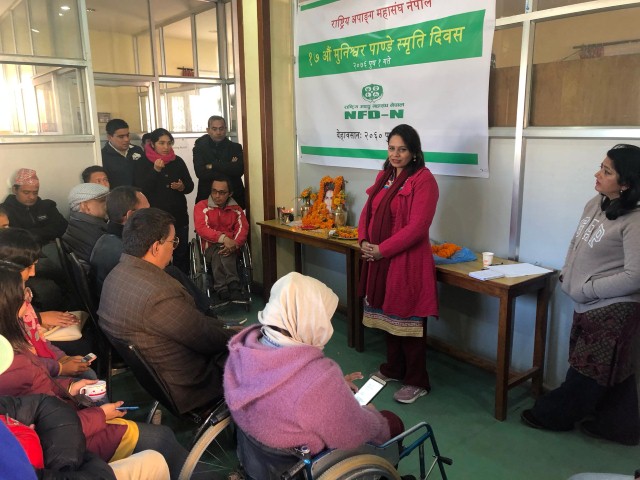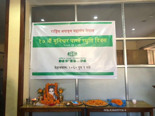 राष्ट्रिय अपाङ्ग महासंघले मिति २०७६ पौष १ गते एक कार्यक्रम गरी यसका पुर्व अध्यक्ष मुनिश्वर पाण्डेको स्मृति दिवस मनाएको छ । स्वर्गीय मुनिश्वर पाण्डे राष्ट्रिय अपाङ्ग महासंघको वि.सं. २०५६ को महाधिवेशनबाट पहिलो पटक अध्यक्षमा निर्वाचित हुनुभएको थियो । अपाङ्गता भएका व्यक्तिहरुको आन्दोलनलाई मुर्त रुप दिदै उनीहरुको सर्वाङ्गिण विकासको लागि भुमिका खेल्नुभएको उनले वि.सं. २०५९ मा भएको अर्को महाधिवेशनबाट दोस्रो कार्यकालको लागी निर्वाचित हुनुभएको थियो ।