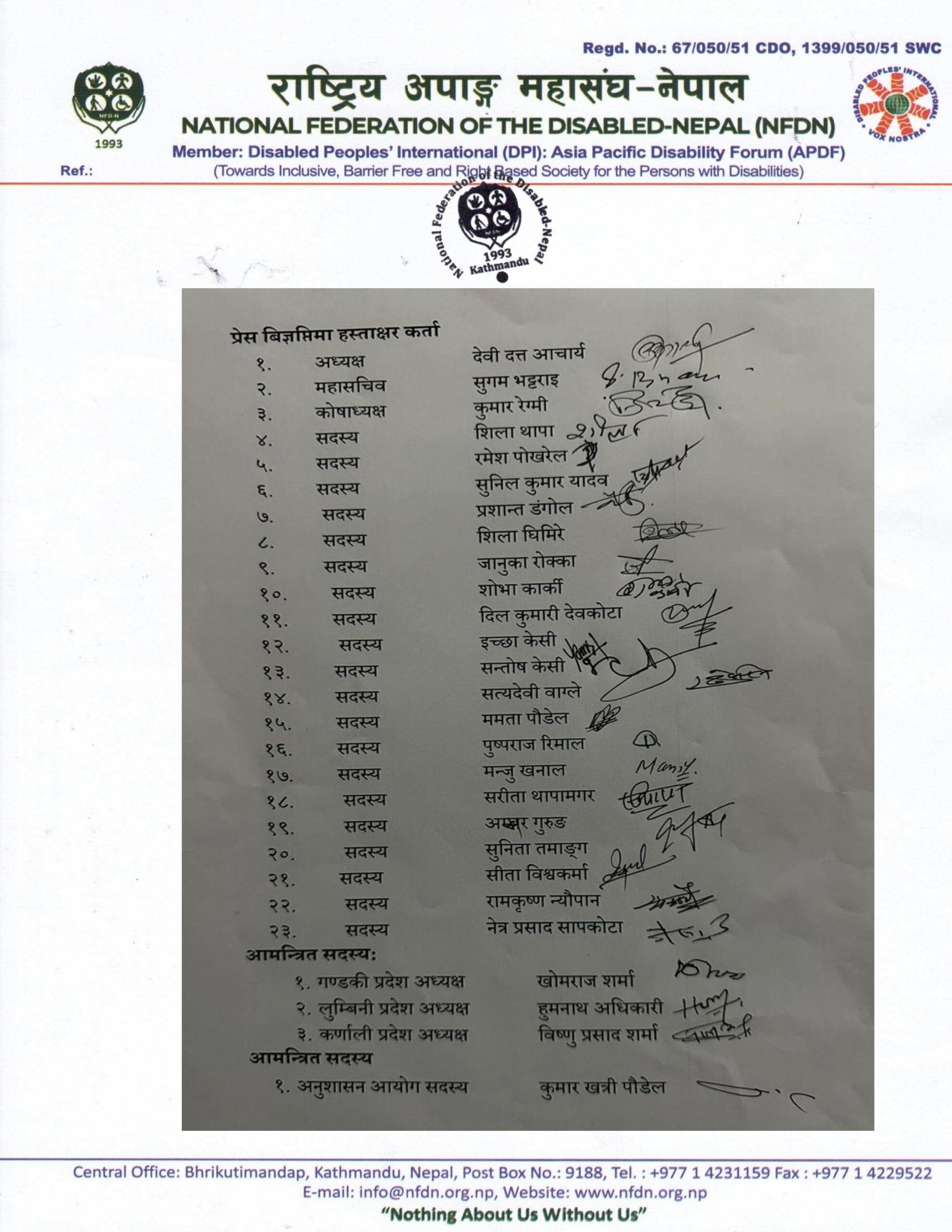 National Federation of the Disabled- Nepal is a national umbrella association of the organizations of persons with disabilities in Nepal. Together with our 350+ member organizations, we promote and protect the rights of persons with disabilities.